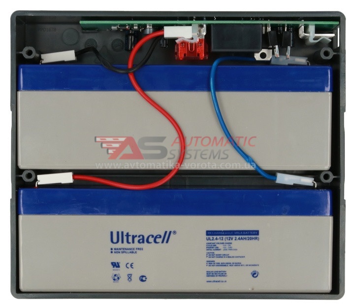 Акумулятор Nice PS 324 із вбудованим зарядним пристроєм для приводів із живленням 24В. Акумуляторна батарея Nice PS324 гарантує вам тривалу роботу автоматики у разі відсутності електроенергії, оскільки вона має ємність 2,2 Ач. Термін служби від 4 до 6 років залежно від частоти використання та відсотка розрядки (при розрядці до 30% близько 1000 циклів, до 50% близько 500 циклів, при повній розрядці близько 200 циклів). Час заряджання від 0 до 100% займає близько 16 годин. Акумулятор Nice PS324 має місткість 2,2 Ач, що відповідає автономності приблизно 12 годин у режимі очікування або 5 хвилин роботи, а це в середньому не менше ніж 10 циклів відкриття/закриття.
